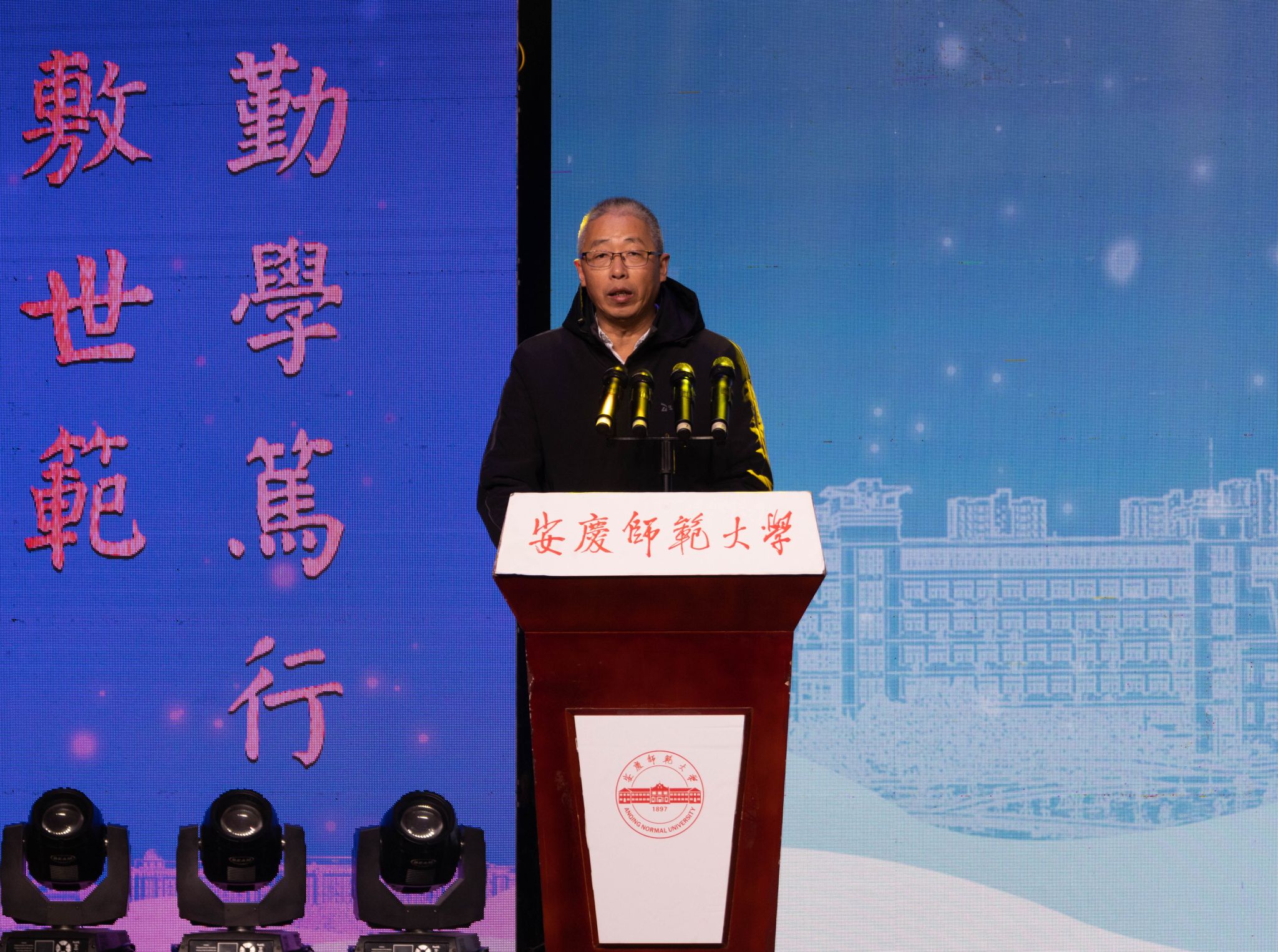 晚会伊始,李亦亮上台致辞。他代表学院党政领导班子对莅临晚会的嘉宾表示热烈欢迎,对为晚会顺利举办做出奉献的所有老师和学生表示衷心感谢。他指出,近一年学院在党的建设、专业建设、队伍建设以及团学工作方面都取得显著进步。李亦亮对学院工作的优秀成果表达肯定的同时对学院学生也寄予希望。他号召全院师生携手共进,在新的一年里锚定目标,踔厉奋发,再创学院人才培养事业的新辉煌。