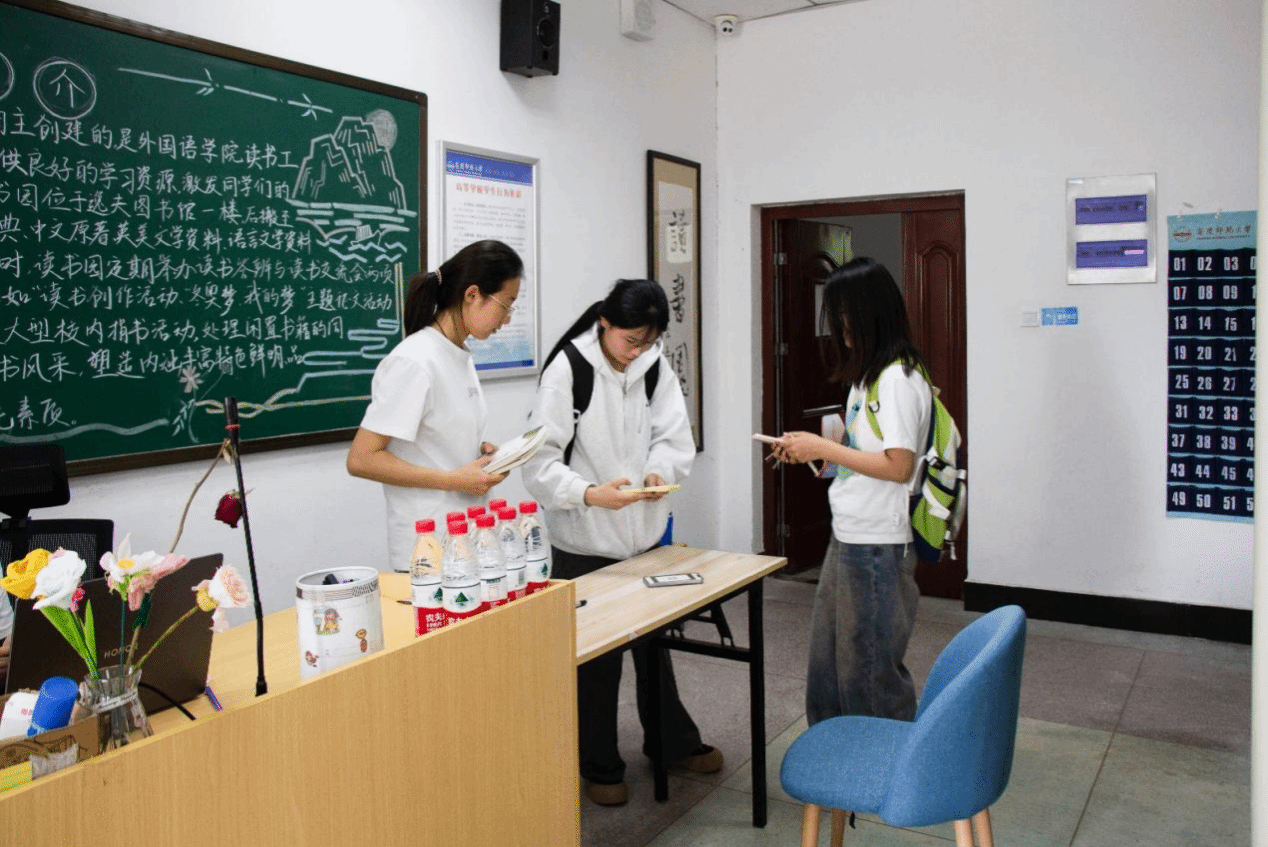 活动期间,负责人现场收集捐赠、登记编目,活动有条不紊地进行。同学们捐赠热情高涨,收到的书籍种类丰富,既有辅导材料、科普读物等学习资料,也有小说、散文精选等休闲读物。