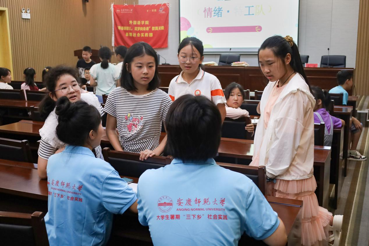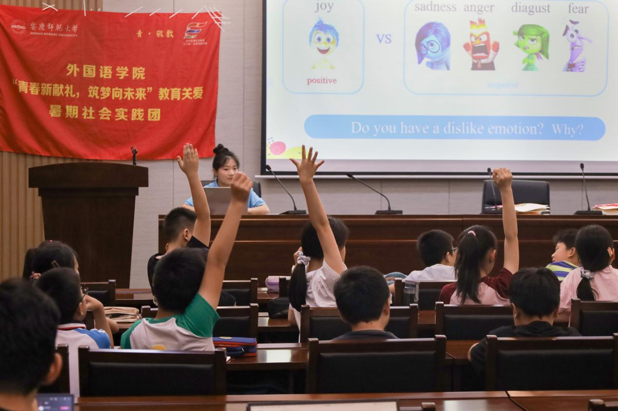 “从地域特点到人文景观、语言文化,我们针对学生年龄段特征设置了特色课程,向他们普及世界文化及语言知识。”实践团成员、外国语言文学类专业2023(7)班的刘璇介绍。近日,beat365平台唯一官网beat365平台唯一官网“青春新献礼,筑梦向未来”教育关爱实践团走进怀宁县“青年之家·红领巾”学堂,携手小学生开展“领略文化交融,深悟语言魅力”主题课程,带领他们游世界国家,探文化风情。